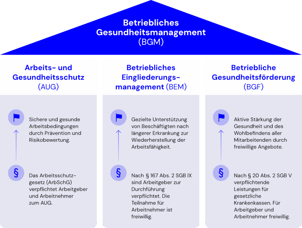 Das Betriebliche Gesundheitsmanagement (BGM) ist ein umfassender Managementansatz, der darauf ausgerichtet ist, die Gesundheit und das Wohlbefinden der Mitarbeitenden nachhaltig zu stärken und zu erhalten. Es beinhaltet die systematische Entwicklung und Umsetzung gesundheitsförderlicher Strukturen, Prozesse und Verhaltensweisen innerhalb eines Unternehmens.